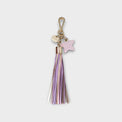 The Star Fringe Tassel brings a touch of celestial charm to a classic form. A small, two-dimensional leather star rests just above the cast metal cap, its asymmetrical placement adding visual rhythm to the sleek cascade of finely cut fringe below. The fringe moves with a soft, fluid grace, light and tactile, capturing subtle shifts of light with every sway. Finished with solid brass hardware offered in multiple plated finish options, this design pairs effortlessly with other LMC charms, adding layered texture and gentle motion to any arrangement.